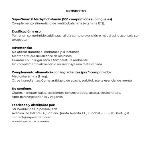 SuperSmart METILCOBALAMINA (VITAMINA B12) 100 comprimidos