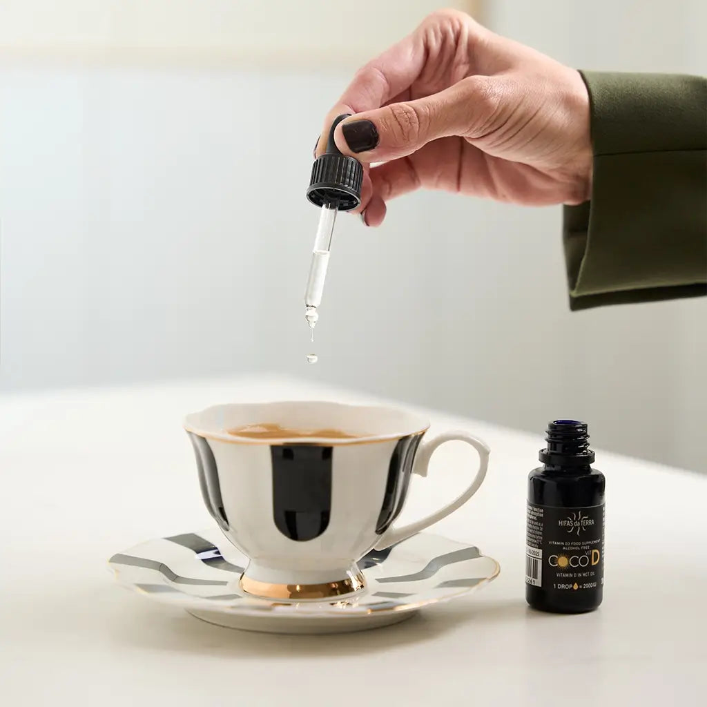 CocoVit D de Hifas da Terra es un complemento alimenticio líquido con vitamina D3 (colecalciferol) altamente concentrada y biodisponible, disuelta en aceite MCT de coco. Está pensado para facilitar un aporte diario cómodo —1 gota al día—; la vitamina D contribuye al funcionamiento normal del sistema inmunitario y a la absorción y utilización normal del calcio y el fósforo.