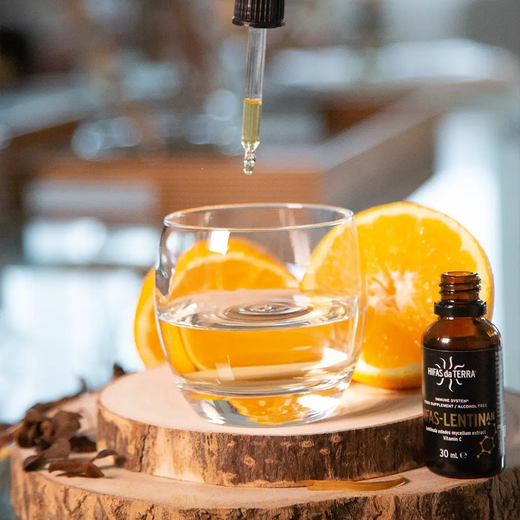 HIFAS Lentinan de Hifas da Terra es un complemento alimenticio líquido sin alcohol a base de extracto puro de shiitake estandarizado (Lentizumib) y vitamina C. Su formato en gotas facilita la toma y la dosificación diaria dentro de una alimentación equilibrada; la vitamina C contribuye al funcionamiento normal del sistema inmunitario.