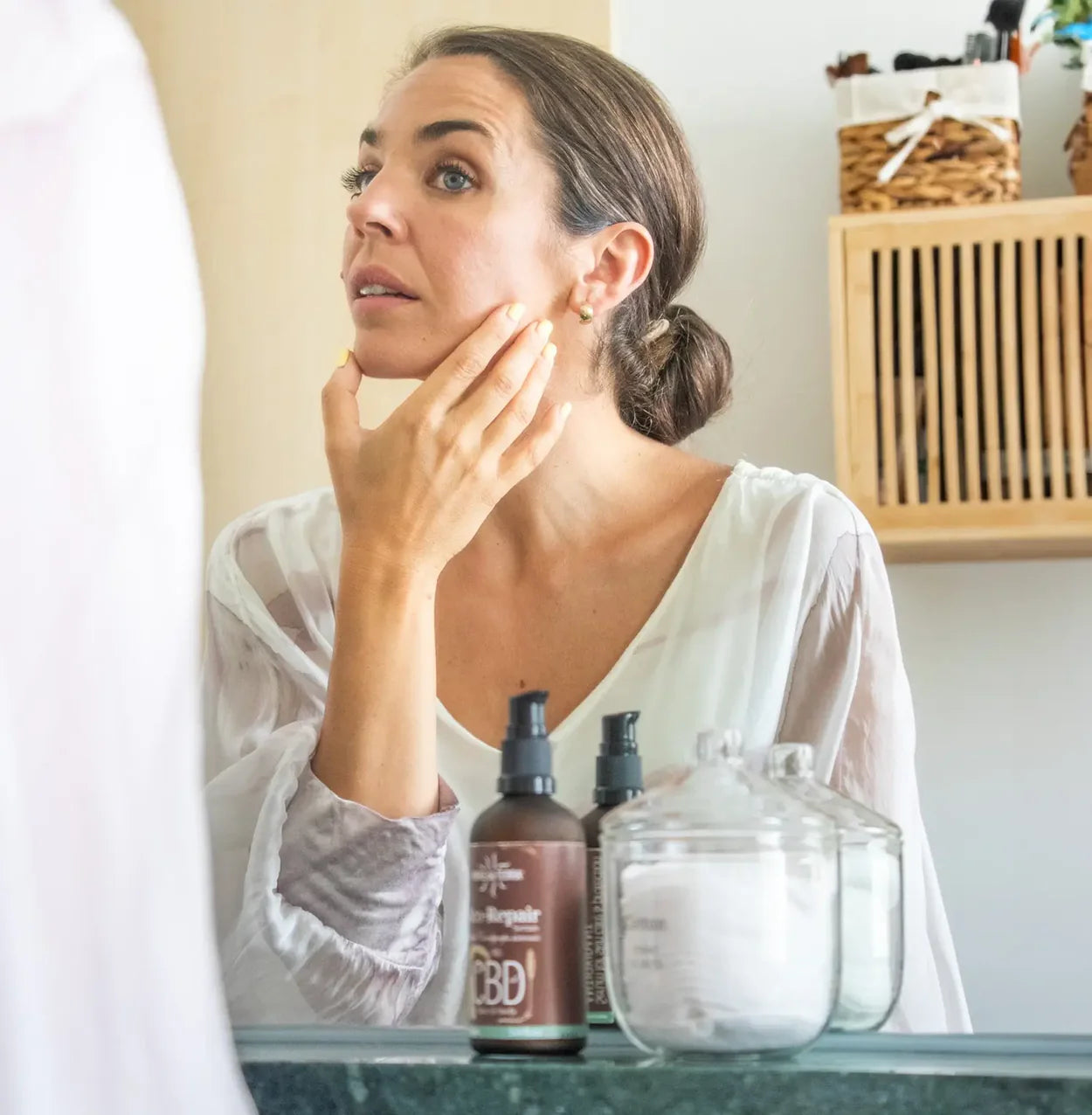 Agua, jugo de hoja de aloe vera, propanediol, glicerina, coco-caprilato/caprato, metilpropanediol, copolímero de acrilatos de sodio, aceite de argán (Argania spinosa), aceite de sacha inchi (Plukenetia volubilis), fosfato de ascorbilo sódico, lecitina, perfume, caprilil glicol, alcohol cetílico, extracto de Cordyceps sinensis, extracto de Ganoderma lucidum, acetato de tocoferilo (vitamina E), ácido láctico, fenilpropanol, colágeno hidrolizado, hialuronato sódico, ácido cítrico, sorbato potásico, benzoato sódico.