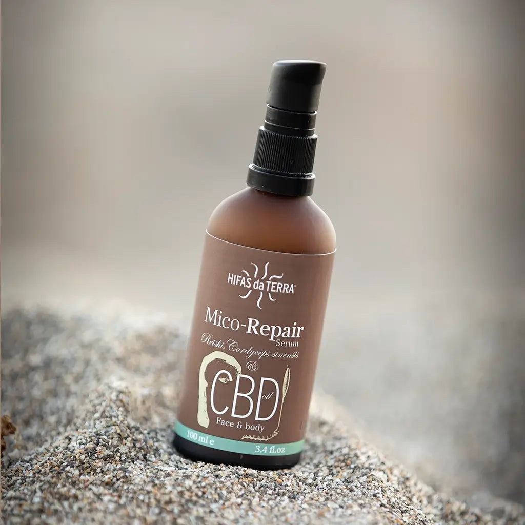 Mico Repair de Hifas da Terra es un sérum facial de rápida absorción con acción hidratante y antioxidante, formulado para ayudar a reforzar la barrera cutánea y unificar el tono. Incorpora extractos de reishi y cordyceps junto con aloe vera, aceites vegetales (argán y sacha inchi), vitamina E, ácido hialurónico y colágeno hidrolizado.