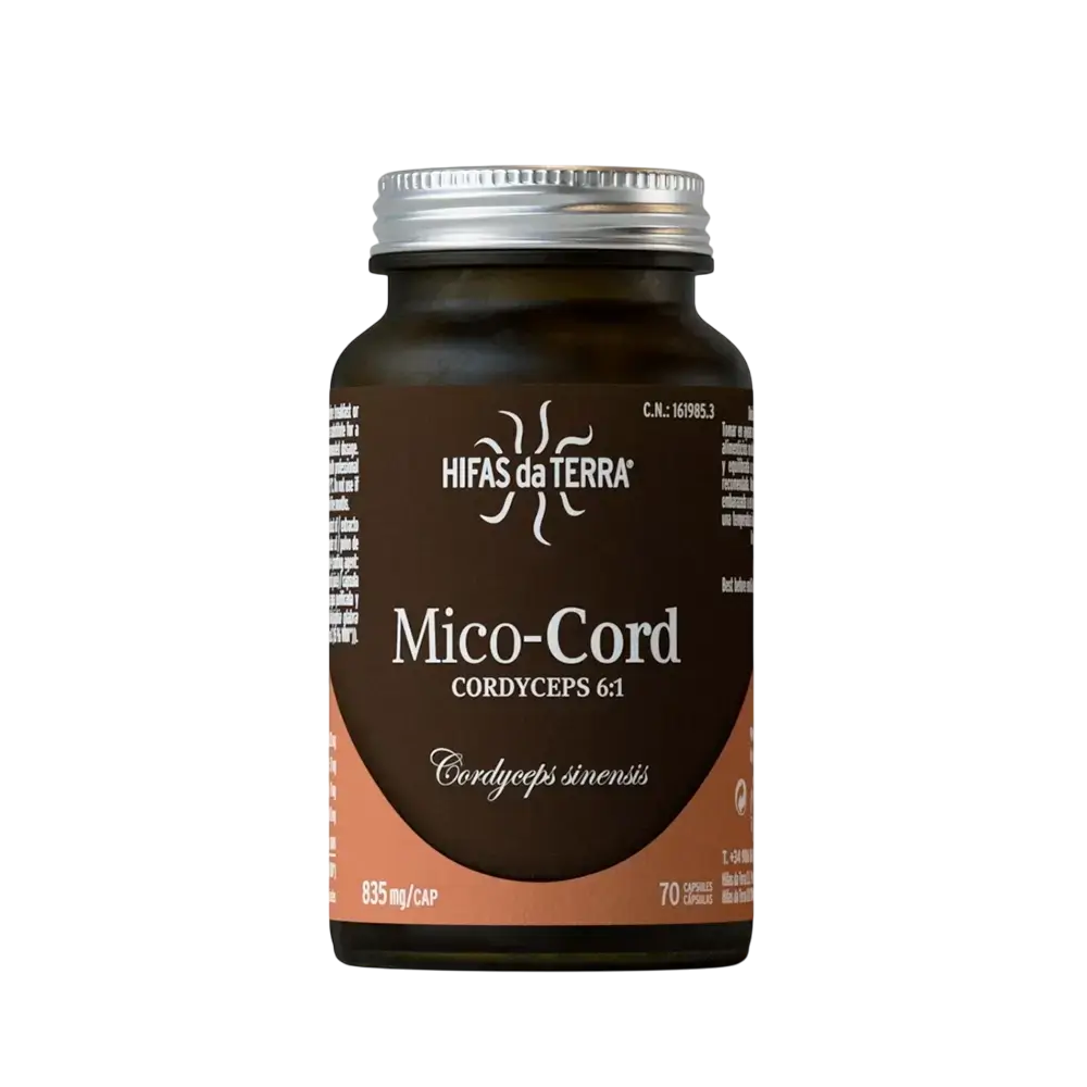 Mico Cord de Hifas da Terra es un complemento alimenticio en cápsulas vegetales que aporta cordyceps (Cordyceps sinensis) en forma de extracto concentrado y polvo, junto con acerola como fuente natural de vitamina C. Una fórmula pensada para acompañar el día a día dentro de una alimentación equilibrada.