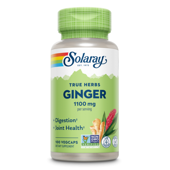 Ginger Root 1100 mg de Solaray es un complemento alimenticio de raíz de jengibre (Zingiber officinale). El extracto de raíz de jengibre ha sido utilizada tanto en prácticas culinarias como medicinales desde hace más de 5000 años. Contiene compuestos bioactivos esenciales, con el gingerol como uno de sus componentes más destacados.