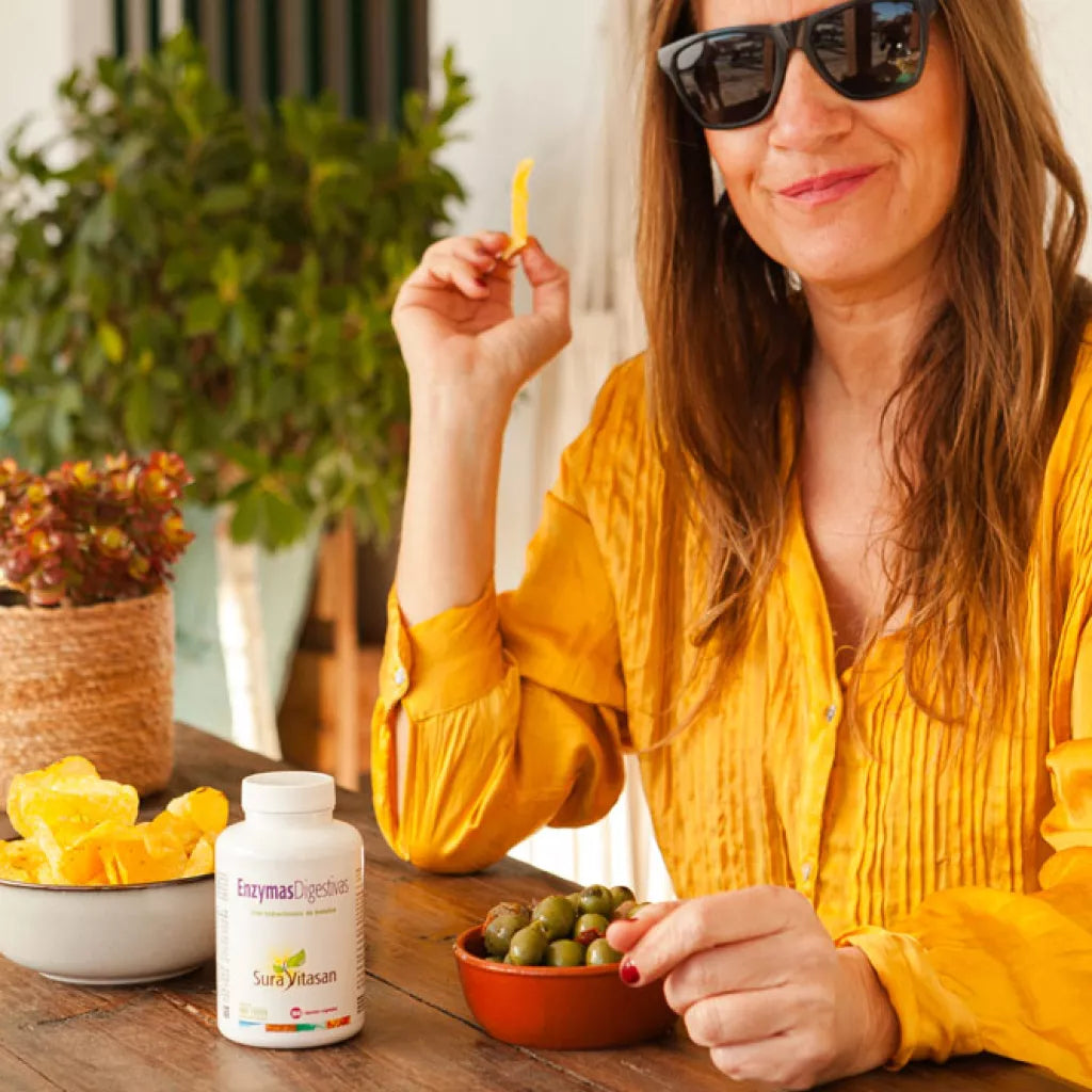 Enzymas Digestivas de Sura Vitasan es una fórmula completa para acompañar las comidas que combina enzimas de origen pancreático (proteasas, amilasas y lipasas), pepsina, papaína, betaína HCl y extracto de bilis. Está pensada para apoyar la digestión de proteínas, hidratos y grasas en personas que buscan un refuerzo enzimático puntual.